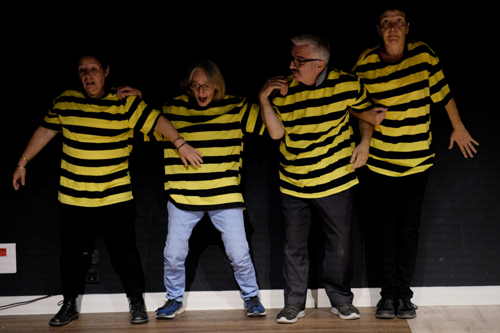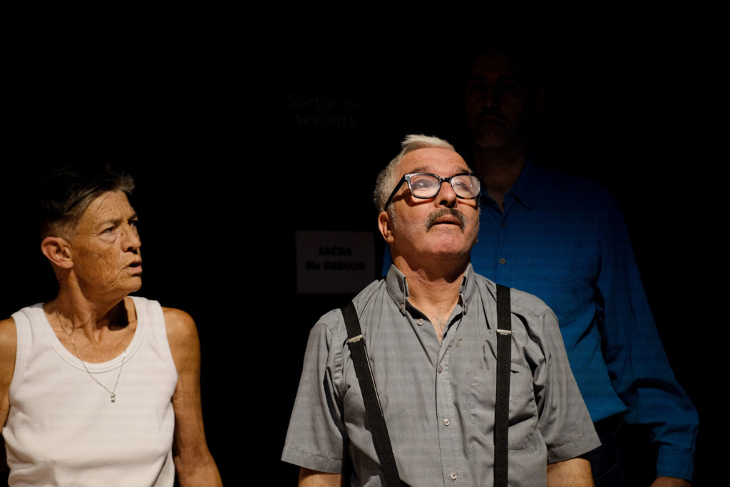 Il s’agit d’un travail de création théâtrale avec la troupe de la Maison Bleue, soit actuellement