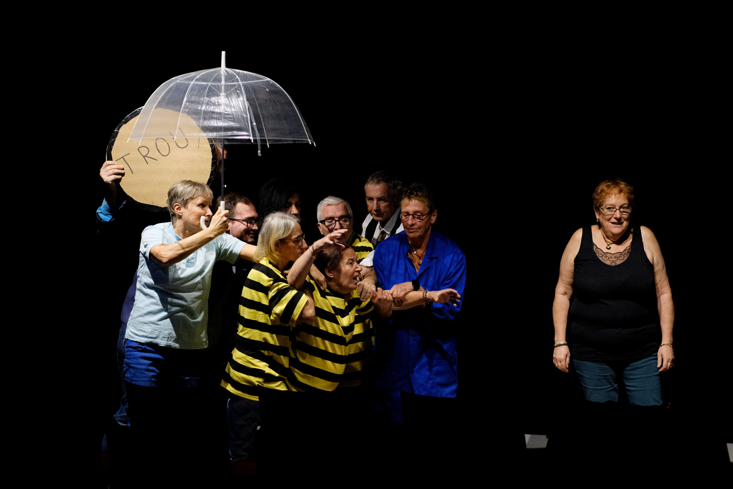 Félicitations à toutes et à tous : acteurs-actrices, « régisseur », costumier/costumière, éclairagiste, metteuse en scène.